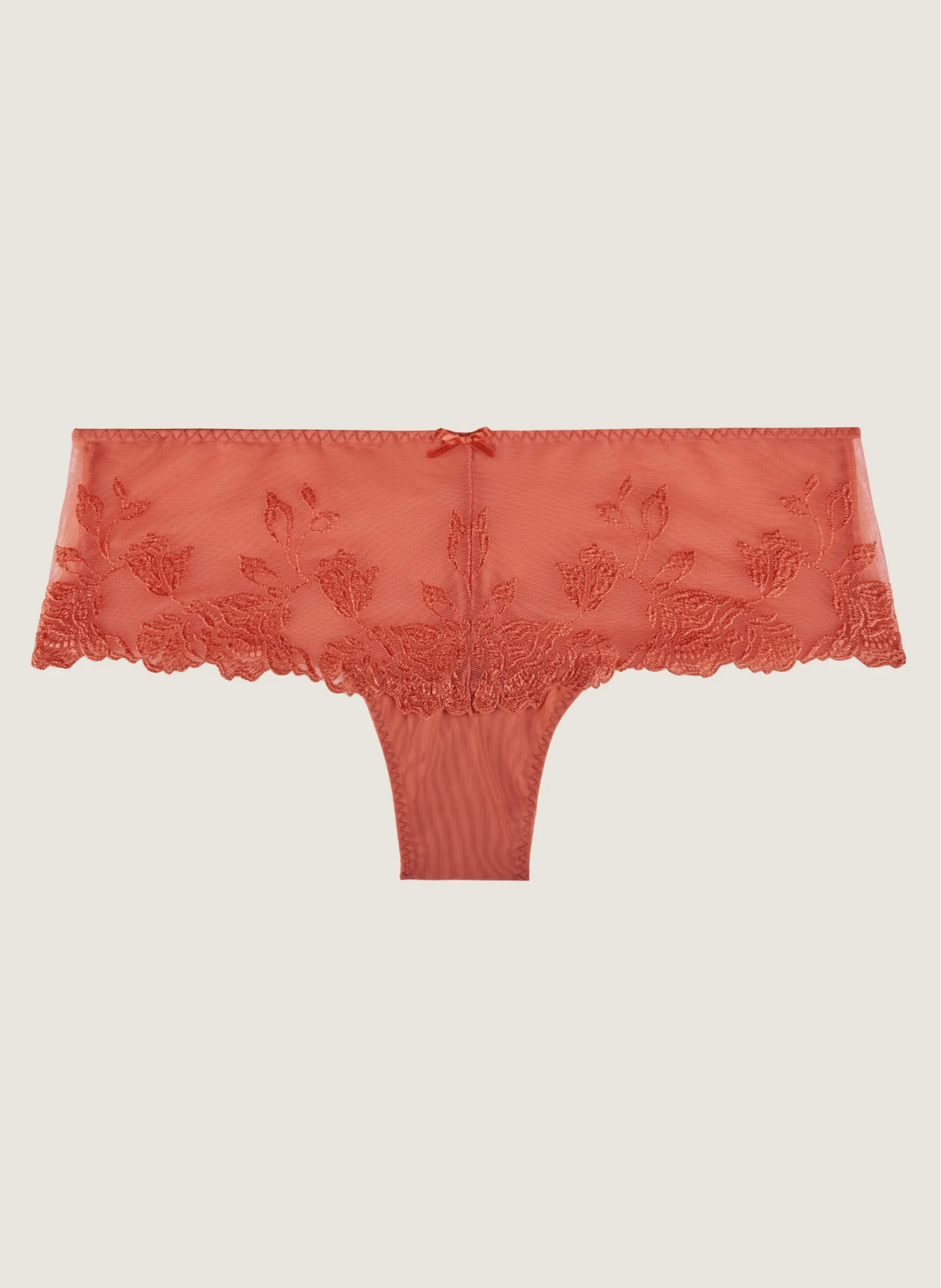 The Soft Essence range from Aubade combines super soft tulle and floral embroidery for a light and airy feel. The Short is cut deep at the sides giving a flattering cut over the hips, finished with a bow centre front.