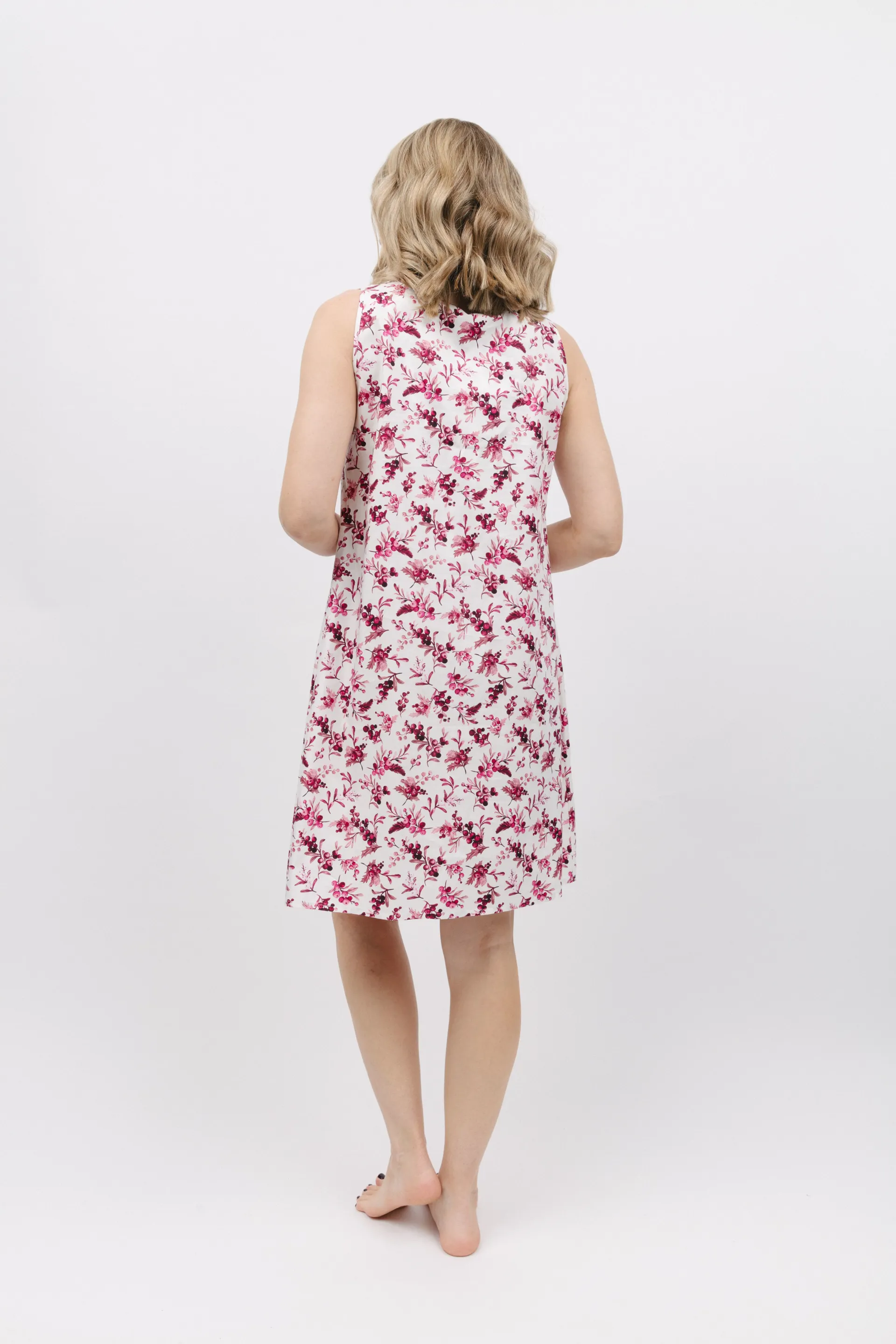 The Eve Nightdress from Cyberjammies is a charming blend of comfort and sophistication. The 60% cotton and 40% modal mix feels soft against the skin with rich burgundy and pink tones combining in a beautiful winter berry print. The rounded neckline and gentle front pleats offer a flattering silhouette in a comfortable style.
